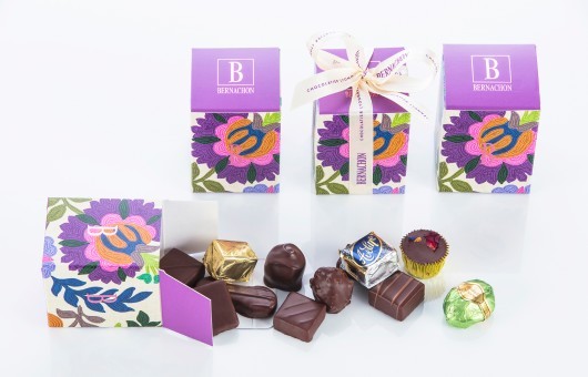An assortment of the iconic specialties from MAISON BERNACHON. Enjoy dark chocolates, pralines, nougatine, liqueurs, and palets d'or, a must-have from the MAISON. The chai box: a new chocolate infused with chai tea flavors.