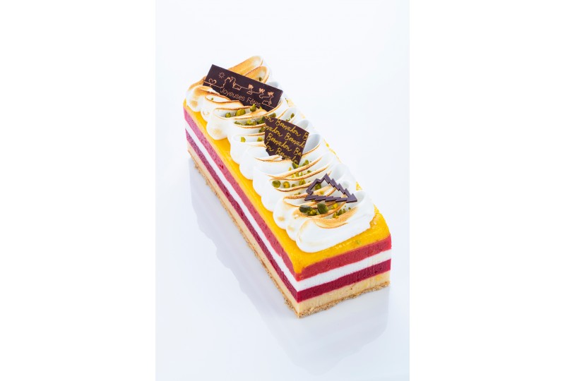 Millefeuille de sorbets: coco, framboise, passion, fraise, poire