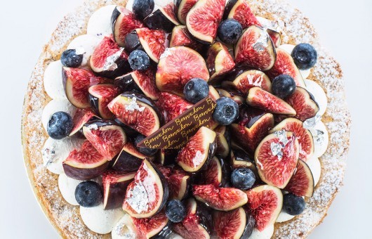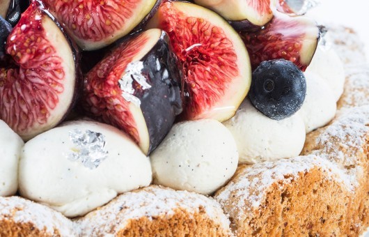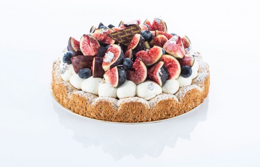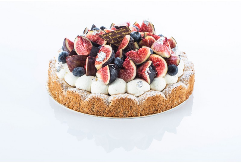 Hazelnut biscuit, mascarpone whipped cream with Madagascan vanilla, compote of red fruits.