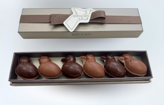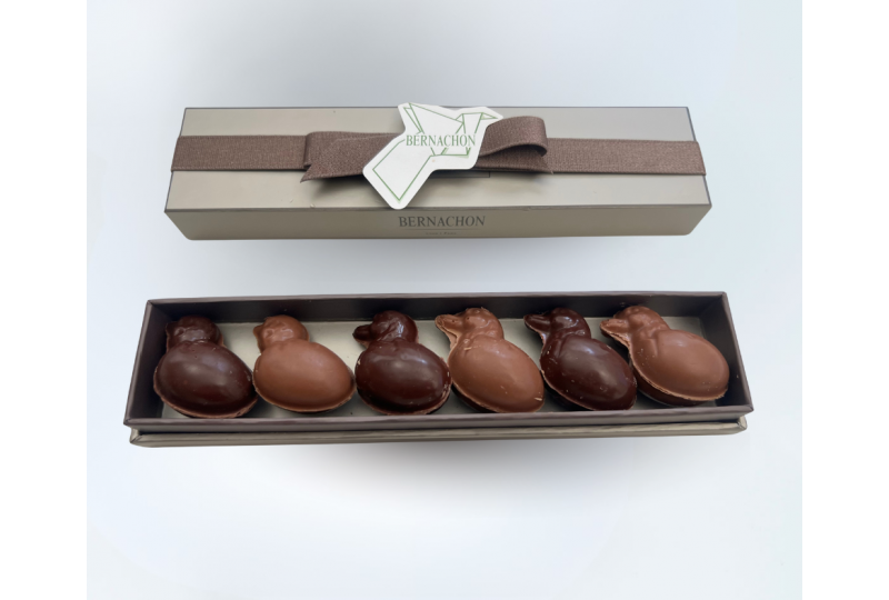 Assortiment de chocolat de 6 moulages poussins noir et lait.