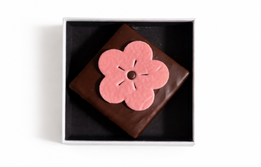 Each piece is crowned with a delicate chocolate flower decoration, adding a refined touch of indulgence.